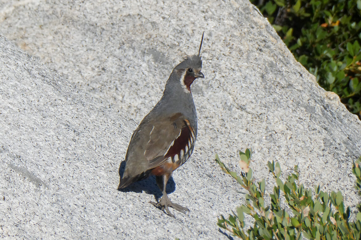 I will say that I’ve been very grateful for seeing so many Mountain Quail this summer! I believe there are two families occupying territory in two different locations along my trail run commute to work. Although I never have my good camera with me when I see them (because I’m trail running), Mountain Quail are one of the main species (i.e. reasons!) that I always carry in my right hand a point-and-shoot zoom camera 🙂